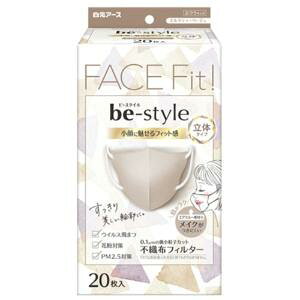 白元アース ビースタイル 立体タイプ ふつうサイズ ミルクティーベージュ 20枚入 不織布フィルター 「スマートカット」でアゴのラインすっきり! マスク 女性用マスク 4902407582461...