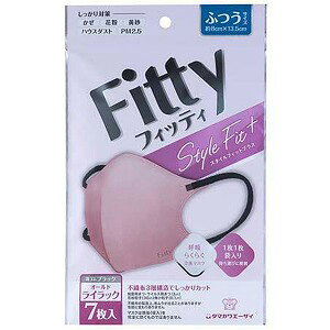 玉川衛材 フィッティ Fitty スタイルフィット プラス 立体 マスク ふつう オールドライラック×ブラック 7枚入 個別包装内容量:7枚。