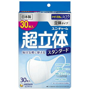 超立体マスク スタンダード (ふつうサイズ) 30枚入り かぜ・花粉用 立体タイプ ( ユニ・チャーム) () ※画像はイメージです。