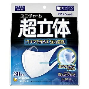 ユニ・チャーム 超快適 超立体マスク 小さめサイズ ホワイト 30枚入 かぜ・花粉用 日本製三層構造フィルタと全面フィット構造でスキマを作らず強力に遮断する立体マスクです。三層構造の高密度フィルタでウイルス飛沫...