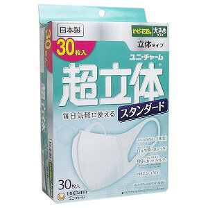 「超立体マスク スタンダード ふつう 30枚入箱」は、 立体形状で会話がしやすく息がしやすい快適な使い心地のマスクです。 99%カットフィルタと超立体構造でウイルス飛沫・花粉を強力...