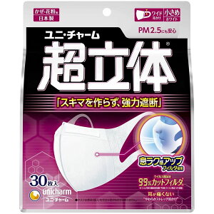 風邪・花粉用 不織布マスク 日本製 小さめサイズ 30枚入 〔PM2.5対応 日本製〕 (99% ウィルス飛沫カットフィルタ) ユニチャーム 立体マスク