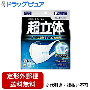 超立体マスク 風邪・花粉用 不織布 ふつう 30枚 ノーズフィットつき 〔PM2.5対応 日本製〕 (99% ウイルス飛沫カットフィルタ) ユニチャーム不織布マスク説明 スキマ作らず、強力遮断! 息らく感アップフィルタ採用...