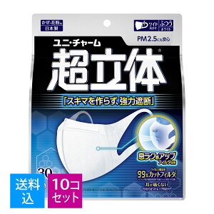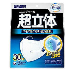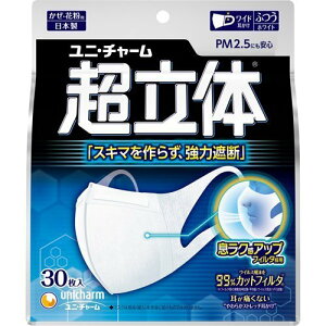 ユニ・チャーム 超快適 超立体マスク 遮断タイプ 大きめサイズ ホワイト 30枚入 スキマ作らず、強力遮断! 不織布 マスク ユニチャーム かぜ 花粉 ワイド耳かけ 4903111526161 ...