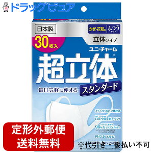 超立体マスク 風邪・花粉用 不織布マスク 日本製 ふつうサイズ 30枚入 〔PM2.5対応 日本製〕 (99% ウィルス飛沫カットフィルタ) ユニチャーム 立体マスク マスクサイズ:ふつうサイズ 枚数:30枚入り...
