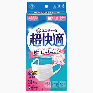 ユニチャーム 超快適マスク 極上耳ごこち 小さめ (30枚) ホワイト 不織布タイプ JANコード:4903111579389