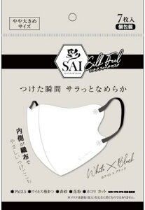 日翔 彩 SAI 立体 シルクフィールマスク ホワイト×ブラック やや大きめ 7枚入 4570084521426 内側が布製でつけた瞬間さらっとなめらか 個包装 立体マスク ...
