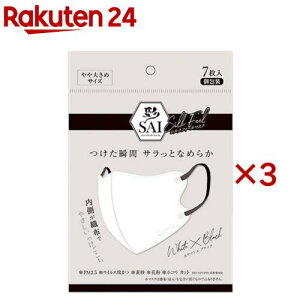 お店TOP>衛生医療>マスク>マスク 形状・素材別>不織布マスク>彩 SAI 立体シルクフィールマスク ホワイト×ブラック やや大きめサイズ (7枚入)【彩 SAI 立体シルクフィールマスク ホワイト×ブラック...