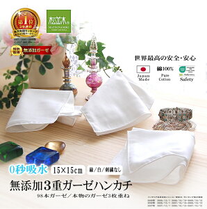ギフト対応 肌に優しい!吸水性抜群!厚手3枚重ねガーゼハンカチ 3枚セット ▼素材 綿 100%肌に優しい【Nuddy Cotton】(R)厚手98本ガーゼ3枚重ね■【エコテックス規格100認証】繊維の国際安全基準有害な化学物質を規制...