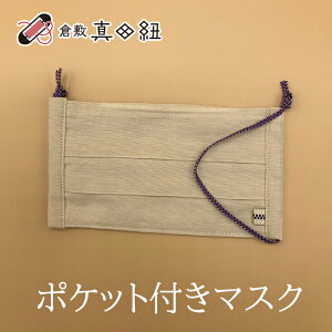 本製品は、倉敷真田紐をあしらったオリジナルマスクです。生地は、倉敷児島産のものを使用し、真田紐と相性の良い和柄のゴムを通しました。 ポケットがついており、お好みで、フィルターなどを挟み込んでご使用下さい...