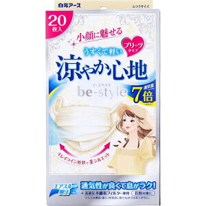白元アース ビースタイル プリーツタイプ 涼やか心地 20枚入 マスク内容量:20枚。ふわりと軽やかなつけ心地の口もと素材。
