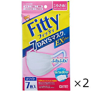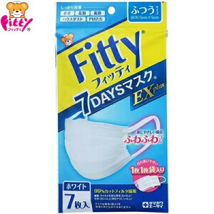 玉川衛材 フィッティ Fitty 7DAYSマスク EXプラス ホワイト やや小さめ 60枚入。マスク内容量:60枚。3層構造で花粉・ほこり。