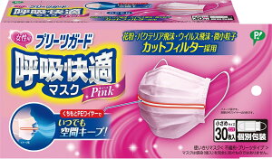 超快適マスク 風邪・花粉用 プリーツタイプ ピンク 不織布マスク 日本製 小さめサイズ 30枚入 〔PM2.5対応 ノーズフィットつき〕(ウイルス飛沫カットフィルタ)〔JIS規格適合審査済み〕