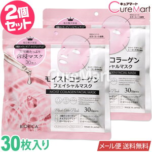 商品名:モイストコラーゲン フェイシャルマスク 内容量:30枚入(美容液360mL)×2個 使用方法:お肌を清潔にした後、全体を両手で軽くおさえながら密着させます。 10分程度置いた後マスクをはずし、洗い流さずにお肌に残った美容液は...