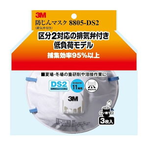 パッケージ個数:1・3M 防じんマスク 8805-DS2 3枚入り・排気弁付きで呼気がこもりにくいので、夏場・冬場の作業環境に適しやすい・溶接、金属切断など金属すすが発生するような作業現場におすすめ・...