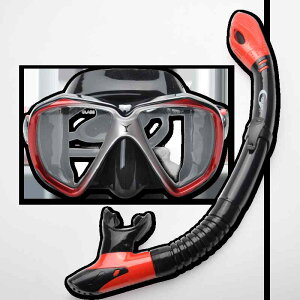 スノーケリング用 マスク&スノーケルセット 男性向けサイズのマスク 視界広がるフレームデザインの新型ワイドマスク。