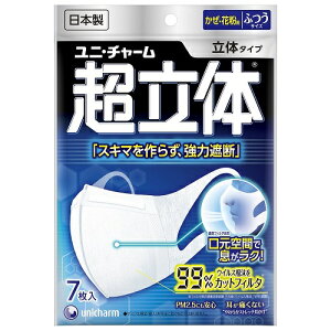 輸入元又は販売元 【 ユニ・チャーム 】【 商品説明 】「ユニ・チャーム 超立体マスク ふつう」は、スキマを作らず、強力遮断!ウイルス飛沫・花粉の侵入をしっかりブロックするマスクです。○三層構造の高密度フィ