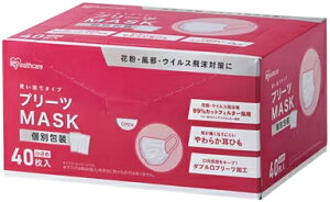 アイリスオーヤマ 不織布プリーツマスク ホワイト 小さめサイズ 60枚入 日本製、4層構造マスク マスク 4967576671989 衛生用品:マスク:マスク 広告...