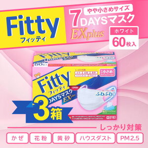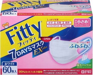 フィッティ 7DAYSマスク EXプラス i7DAYSマスクEXの幅広耳ゴムが長時間着用しても耳が痛くなりにくい「幅広ふわふわゴム」にバージョンアップ!した新スタンダードマスク60枚入です。 ・長時間...