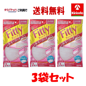 玉川衛材 使い捨てマスク フィッティ シルキータッチ 耳ゴムふわり やや小さめサイズ ピンク 7枚入 3個セット