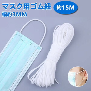 マスク用 ゴム紐 約3MM×15M マスク ゴム ひも ふんわりやわらかタイプ マスク ゴム紐 痛くない 平 マスク 手芸 手作り マスク ハンドメイド 補助小道具 ホワイト