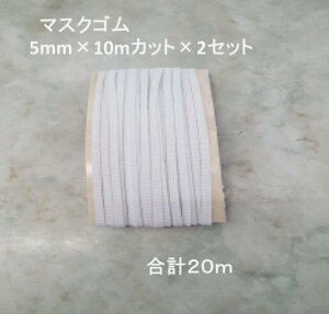 商品名 マスク用ゴム紐 内容数 約10m(5m×2袋) 厚さ:約3mm 商品説明 マスクを手作りする際に必要なマスク用のゴム紐です。 マスク不足を手作りして乗り切りましょう! 柔らく伸縮性があり、耳が痛くなりにくいです...