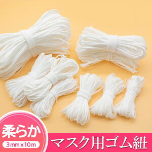 即納 マスク用ゴム 3mm×10mカット マスク用紐 在庫あり マスクゴムマスクひも ウーリースピン 即日 白 ホワイト 手作りマスク ハンドメイド 伸縮性 耳が痛くない あす楽 ゆうパケット