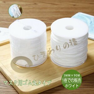 送 マスク用ゴム紐 幅約3MM 1巻での販売 約90M やわらかいマスクゴム やわらかいマスクゴム マスクゴム 白 マスク用ゴム ホワイト 手作りマスク ハンドメイド 耳が痛くない 手作りマスクゴム丸タイプ...