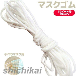 【素材】:ナイロン 【カラー】:ホワイト 【サイズ】:ゴムの幅3mm/長さ10m 【セット内容】:ゴム紐のみ ★丸タイプで柔軟な素材で手作りマスクはもちろん、赤ちゃんの衣料にも最適です ★ソフトに伸びて耳が痛くならない