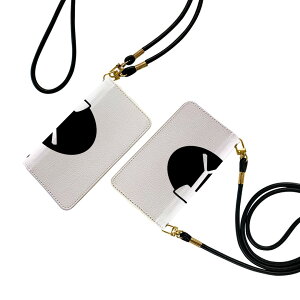 ショルダー付き手帳型スマホケース。シームレスな全面デザイン(内側は落ち着いたオフホワイト)。外側は高品質の人工革を使用。内側にはスマホを装着するケースが付属。機種専用のカメラホール仕様でケースを装着したまま。