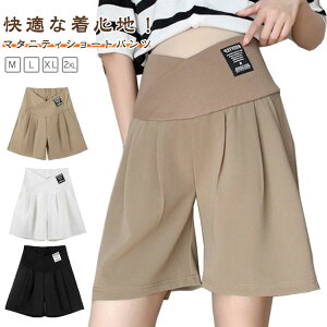 M〜2XL!らくちんマタニティショートパンツ!部屋着やおでかけもおしゃれにコディネート!妊娠初期〜産後まで!サイドのアジャスターでお腹周りの調節が可能。通気性が良く、さらりとした肌あたりで、暑い夏も快適にご着用いただけます
