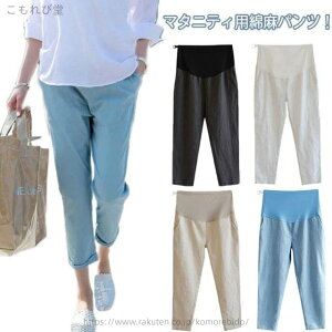 マタニティ用綿麻パンツ! サラサラとした綿麻素材使い、汗をかいても爽やかな履き心地。 お腹の周りはストレッチ性抜群なカットソー素材で、窮屈感なくお腹をしっかり包むことができます。 ウエスト周りの調節ができます...