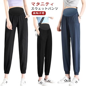 【接触冷感】【マタニティ スウェットパンツ】ストレッチのきいた肌当たりの心地よいサラッとした素材で、蒸し暑い季節もお肌にべとつかず、快適なマタニティライフをお過ごしいただけます。お出掛けにもルームウェアにも使えるソフト