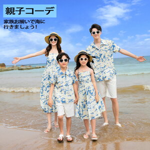 親子お揃い 親子コーデ 夏 夏服 メンズ レディース 男の子 女の子 ペアルック ハワイ アロハシャツ ワンピース 花柄 総柄ワンピース パパ ママ 子供 キッズ 半袖 カップル ご夫婦 旅