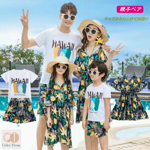 親子お揃い 親子ペア 水着 アロハシャツ ペアルック 親子ペア ワンピース 親子 ペア tシャツ おそろい プレゼント 花柄シャツ 親子コーデ ワンピース パパ アロハシャツ メンズ カップル お揃い プ