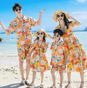 【素 材】綿【カラー】写真色セット内容男の子/パパ:アロハシャツ+ショートパンツ女の子/ママ:ワンピース【サイズ】男の子:90 100 110 120 130 140 150 160女の子:90 100...