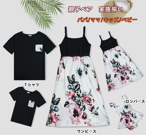 親子 ペアルック 親子コーデ 親子お揃い Tシャツ 花柄ワンピース