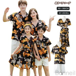 【素 材】綿【カラー】写真色セット内容男の子/パパ:アロハシャツ+ショートパンツ女の子/ママ:ワンピース【サイズ】男の子:90 100 110 120 130 140 150 160女の子:90 100...