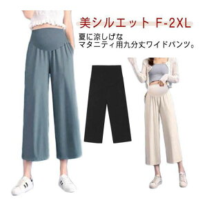 夏に涼しげなマタニティ用九分丈ワイドパンツ。サラサラの清涼な素材が心地よい、脚長効果抜群 ストレッチ抜群な生地を使用、シワになりにくく、ホコリも付きにくい生地感だからお手入れも簡単! 落ち感のある滑らかな生地感で、着る