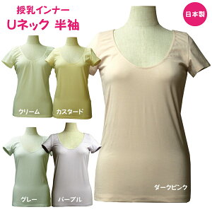 半袖丈授乳インナー・大きくカットされたUラインの襟ぐり!自由に引っ張れる素材の伸縮性の良さ!簡単!下に引っ張って授乳が出来る! おしゃれな授乳用としてお勧めの授乳インナーです♪サイズM・L2サイズカラーは5色...