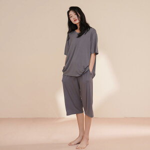 ・タイプ: セットアップ・スタイル: シンプルカジュアル・主な素材: モダール95%以上・袖丈: 半袖・パンツ丈展開: 七分丈、ショート丈、ロング丈・カラー展開: グレー、パープル、ピンク、ブルー、イエローグレー...