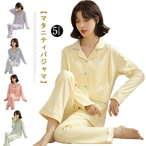 マタニティから産後も使えるパジャマ上下セット!授乳口付!コットンのふんわり素材と無地なデザインでリラックスタイムを満喫着心地抜群!贅沢ルームウェアマタニティママ向け♪ゆったりサイズでパンツは特殊ウエストゴムを使用し...