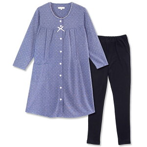 授乳口付 マタニティ パジャマ 長袖 春 ダンボールニット素材 ドット柄 産前 産後 授乳 前開き ウエスト調整機能付きパンツ M L LL