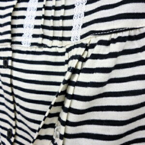 裾フリルを施した可愛らしい授乳口付きのマタニティパジャマ。胸元には隠しスナップボタンが付いて、開けると授乳に便利。また、授乳時にも使いやすいカップ入り。妊婦さんも嬉しい、ストレッチ性の良い柔らかい風合いのコットン混の
