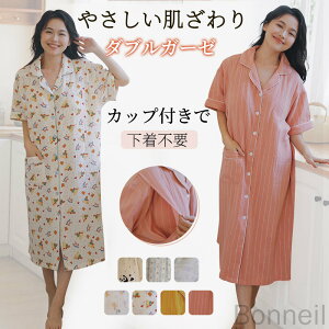 \リニューアルして再入荷!/マタニティ パジャマ 前開き ワンピース 半袖 綿100% 授乳服 春夏 授乳口付き ダブルガーゼ ネグリジェ ストライプ 無地 ロング丈 産前 産後