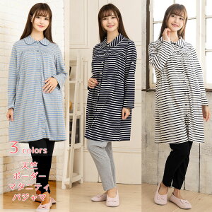 天竺 ボーダー 前開きナイティ マタニティパジャマ 授乳口付き サイズ M,L 素材 綿35% ポリエステル65% 色 アイボリー、グレー、紺 ...