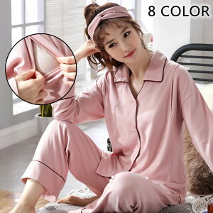 マタニティパジャマ 長袖 前開き 開き襟 オープンカラー 寝間着