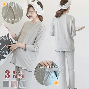 マタニティ パジャマ 春夏 長袖 授乳 ルームウェア 2点セット マ