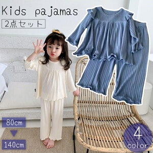 メロウフリルが随所に散りばめられた可愛いデザイン♪ リブ素材を使用した子ども用パジャマ、上下の2点セットです。 【サイズについて】 画像をご参照ください。 【カラーについて】 生産ロットにより柄の出方や色の濃淡が異なる場合が