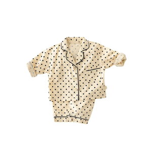 ドット柄の可愛い子供用パジャマです。 お家の中でも可愛く気分もアップ! 4色からお選びいただけます♪ 【サイズについて】 画像をご参照ください。 【カラーについて】 生産ロットにより柄の出方や色の濃淡が異なる場合がございます。